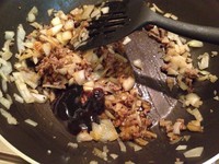 1. 起油锅,下一半的洋葱末炒香。