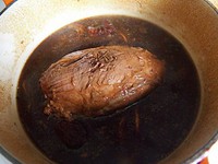 有烤箱的也可以把铸铁锅入烤箱下层,180度,加热90分钟,牛腱肉用筷子可以轻易扎透即可