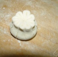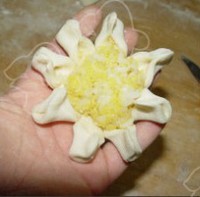 三、均分成8部分,每一部分捏合时,里面捏合,外面不捏,出来的形状好看。