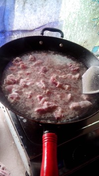 等到水有些沸腾,排骨呈这个色泽的时候全部捞出来放入碗中