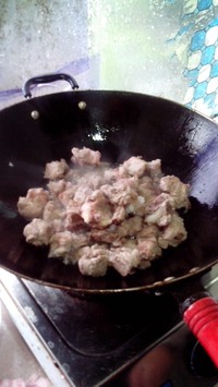 先将买回来已经切好的排骨洗干净,然后在锅内倒入适量的水,把排骨放入锅内。
