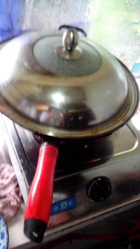 揭开盖子后放入大蒜,食盐。(可以适当放一些鸡精)