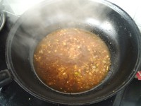 锅内加入底油,放入葱姜蒜末煸炒,再放入辣酱、豆瓣酱(适量)炒。