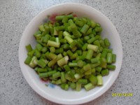 4. 蒜苔切成丁备用