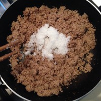 出绞肉机后再进锅 加入油 糖 继续炒阿炒