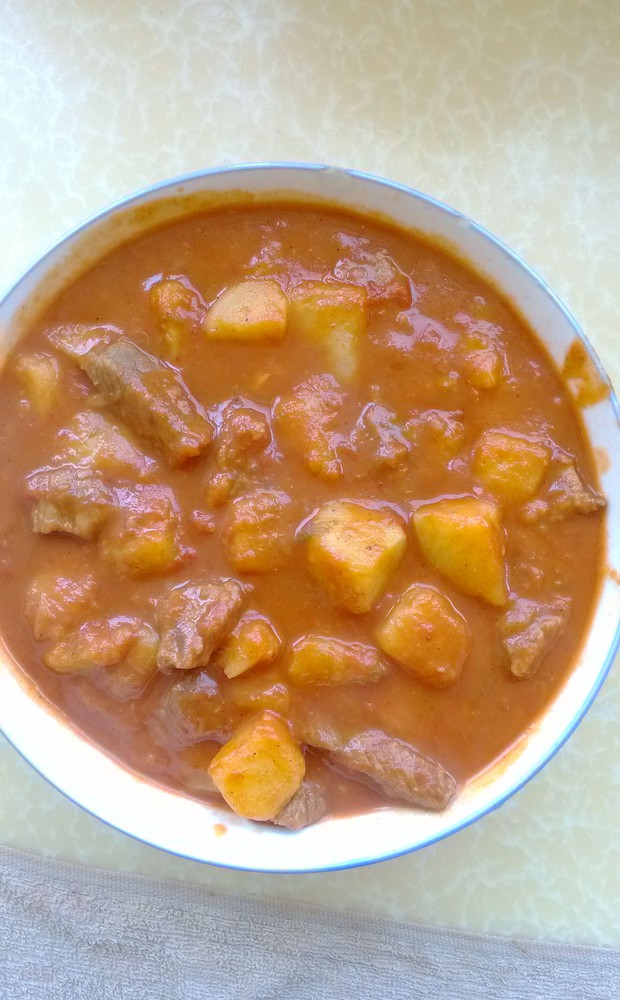 这个菜是参照其他网友的土豆牛腩做法又进行了小小改动,口感比较浓郁,色泽鲜艳
