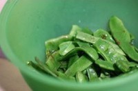 先将肉放在锅中翻炒变色,表面略微焦黄后放入豆角、香菇(如果是铸铁锅,完全可以先炖一会肉,大约炖肉15分钟左右吧最后放豆角)
