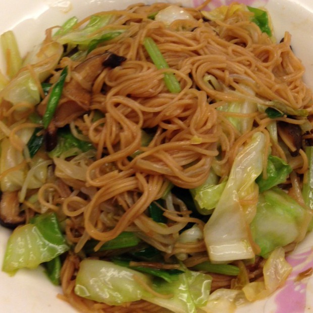 4.锅不用洗,直接放入大概两碗水、水开之后放入炸面线和古龙罐头、煮到大概水干快熟的时候再加入之前炒好的材料和切好的葱尾芹菜翻炒即可、无需再放调味