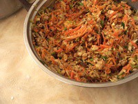 稍多油,下入肉馅炒散,加入香菇,然后加入菜丝,