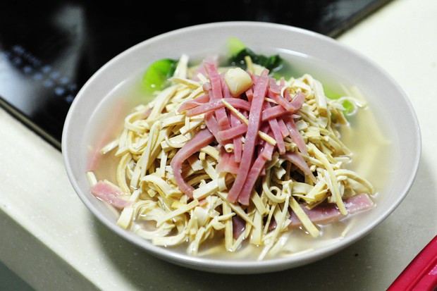 笔者是个地道北京人,但是不知为何真心很爱淮扬菜和江浙菜。煮干丝算是一道很标准的淮扬菜,用高汤煨出的豆腐丝和青菜,配以火腿丝,那清淡的感觉让这道菜经常会出现在江浙人的早茶或夜宵的餐桌上。