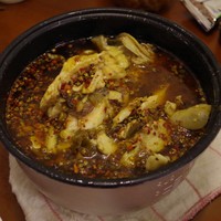 热油后,加入适量猪油,油热后放入花椒,干海椒,和两种鱼调料包