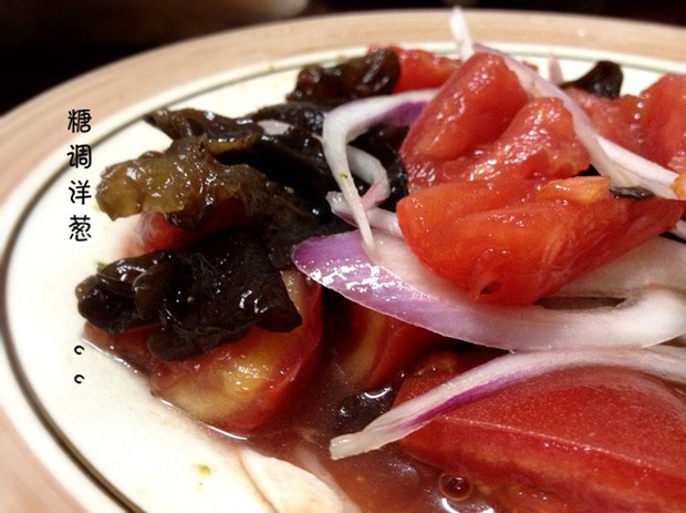 洋葱 番茄洗净切好 与木耳一起 加糖 醋调味即可