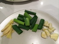 4. 热锅倒油,7成热时放入葱姜蒜煸香,再倒入青椒,洋葱略炒马上盛出锅备用