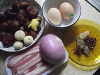 8. 加入香菇丁和煮熟剥皮的鸡蛋,换小锅,用小火慢炖