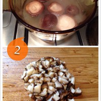 把香菇丁,胡萝卜泥,姜沫拌入牛肉泥中,再用机器打匀,可少量多次加水,增加馅料的口感,防止馅料硬实