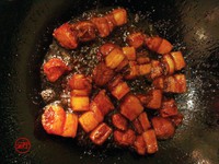四、加水烧的时候,最好一次性加足量,避免中途添水,如果水份烧干了,需要添水,也最好是添开水。如果加冷水,五花肉会收紧,就不容易烧软了。
