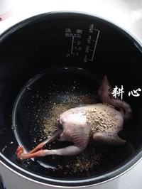 鸽子择洗干净,焯烫一下。