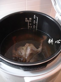 旋转上盖至合盖位置,合紧时极其“嘀”提示一声。此时选择【煲汤】键,口感选择【浓郁】。