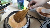 加入面粉,粘稠度以搅拌时能稍微较上劲,筷子能挑起来一点为宜。新手建议多放面。因为西葫芦出汤的缘故不必再加温水。