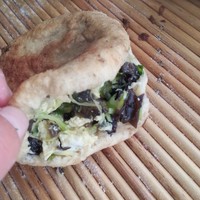 面揉好后,切成均匀大小,擀面杖擀成面片,放入调好的馅儿,像包包子一样包好,反过来按压即可。