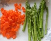 胡萝卜切丁,芦笋头切颗粒状,留尾部嫩的