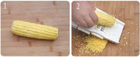 把玉米须去掉,洗净。 用礤子把玉米粒礤成玉米碎。