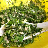把切碎的地菜和豆干加盐拌均…(馅儿里面可以加冬笋…也可以光地菜…)