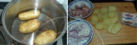 1. 土豆洗净,入锅加水没过土豆,加少量盐煮15-20分钟至土豆熟