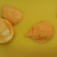 【1】芒果要挑中等个头,肉厚核小的才行,肉薄的做出来的花很矮,不好看。。。【2】芒果皮最好要用刀削,手剥果肉会皱皱的,影响花瓣效果。。。