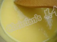 把蛋奶糊用小火煮至变浓稠(边煮边搅拌)过筛后冷却备用