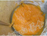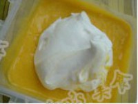 芒果泥分2次倒入冷却的蛋奶糊,搅拌均匀