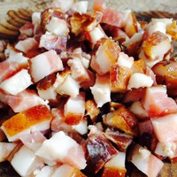 腊肉用温水洗净以后切成小丁,带皮的更好吃哦!