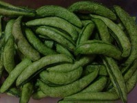 炸至绿色发白撩起,微晾凉后洒上椒盐粉