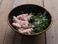 猪肉末、香葱末(与猪肉的等体积的量)、盐、花椒末,混合拌均匀
