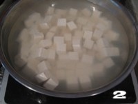 锅中倒入清水,加少许盐大火烧开后放入豆腐焯2分钟