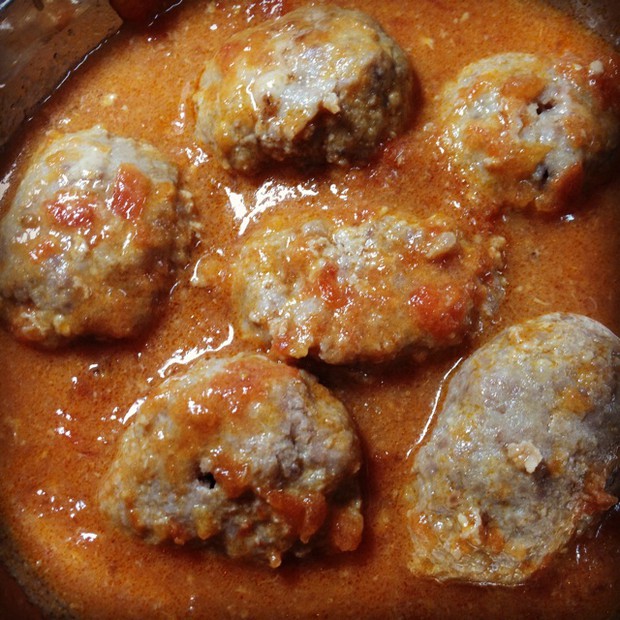 3. 先把番茄放在高压锅里炖烂,再把肉团子放在酱里面煮(不要翻,肉团子会散开),快熟的时候按个人口味加上番茄酱煮开即可开饭。