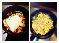 3. 把芝士加入,稍加点水,翻炒使芝士融化。