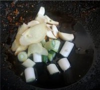 锅里倒油放入葱姜蒜爆香(炸油辣子的锅我没洗直接倒了油)