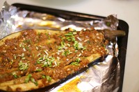 烤箱预热,放入茄子,上下火200度烤10分钟左右。出锅!