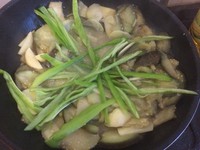 放入油,等油锅热后放入姜、蒜爆炒之后放入茄子炒,茄子比较吸油,所有油可以略微多一点点