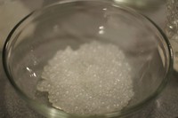 小西米100g,水开后倒入煮至中间只剩一个小白点,即可捞起用凉水冲,再将盛有西米的漏勺放入凉水中,备用。(大西米也可以,但我觉得没有小西米那样方便)