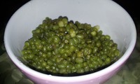 大约半小时后绿豆几本脱壳,用勺子将绿豆壳舀出