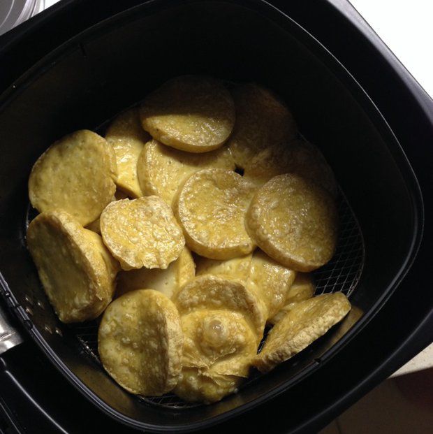 空气炸锅预热,放入素鸡,180度,10分钟。(中间可摇晃一下炸篮)
