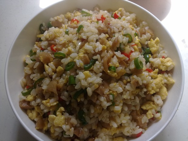 最近很爱吃炒饭。材料没有限制,冰箱里剩什么菜都可以拿来炒,简单美味。