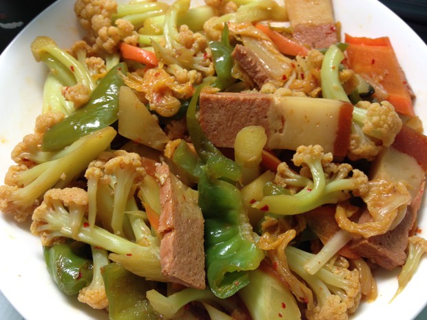 花菜,东北又叫菜花,无论煎炒烹炸都非常好吃。这次心血来潮,把冰箱里的辣白菜和花菜放在一起,味道出乎意料的好^^,跟大家一起来分享一下。这道菜的精髓是辣白菜,我又随机放了素肉、胡萝卜和青椒,颜色好看点,大家可以随意~