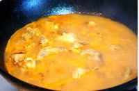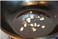 锅里油烧热,放入蒜片,出香味后放入鸡块