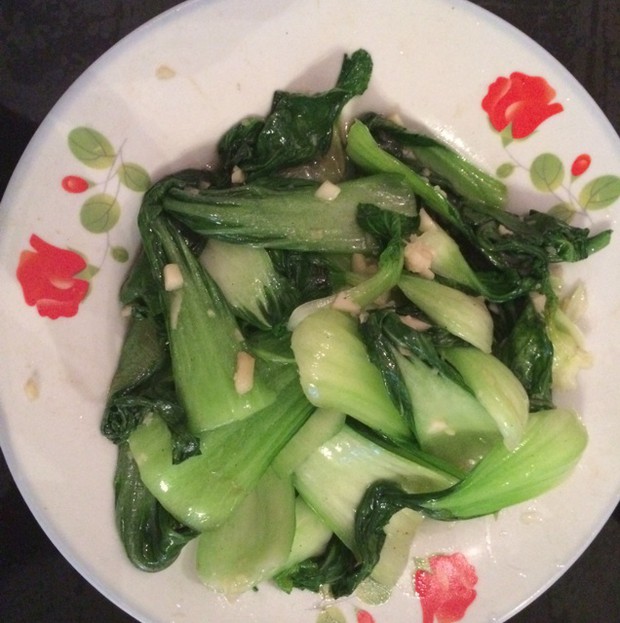 待油温烧热,将切好的蒜与洗干净的小白菜一并倒入锅内,通过反复翻炒尽可能使其受热均匀不影响口感,翻炒约十五秒左右,加入盐、鸡精各少许,继续翻炒,十秒内使其均匀溶化,即可起锅。切忌在锅中作过多停留,不油腻的清脆口感,飘香四溢,除了食材之美,也来自于火候的把握。