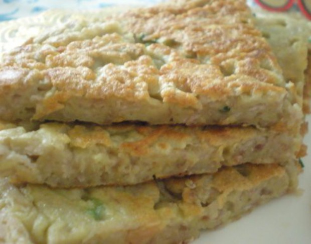 平底锅内放油,倒入拌好的蛋糊,小火煎至基本定型时翻面,最后煎至两面金黄