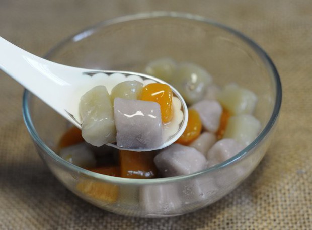 四、各种薯类面团,放粉的分量不要相差太大,否则会出现口感很不一致的状况。比如红薯圆很Q,而芋圆却软软的。