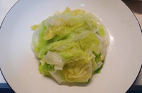 先将生菜掰成小块,洗净,锅中添水,水开后放入一点点盐,几滴油。然后放入洗净的生菜汆烫几秒钟即可。最好用个大锅,水量多一点,把菜分两次下锅,因为一次放太多生菜,受热不均,会导致有的烂了,有的还没有熟,影响口感。最好在旁边放一盆加了冰块的凉水,汆烫好的生菜捞出来后迅速放入冰水中过一下,这样可以使烫好的生菜口感更脆,而且颜色保持的更好。处理好的生菜就可以控干水分摆在盘中备用了。